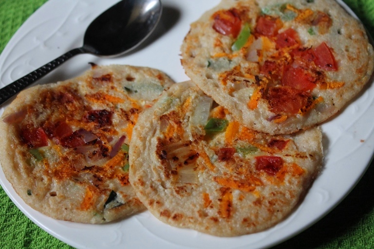 Heat the non-stick tawa,smear a little oilPour a portion of the batter on it,add some chopped veg on top and press softly.Cook until the corners turn brown.Serve hot with sauce.